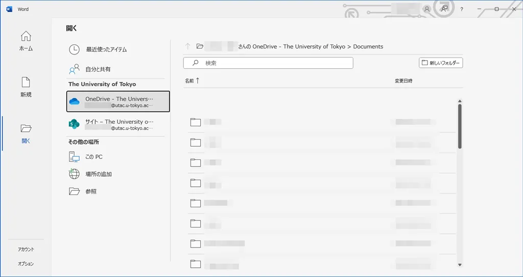 また,UTokyo Accountでライセンス認証を行うことにより,UTokyo Accountで利用するOneDriveの機能をOfficeアプリ上で利用できます.下の手順に沿って利用してください.ただし,ECCS端末にログインするたびに改めてUTokyo Accountでサインインする必要があります.
