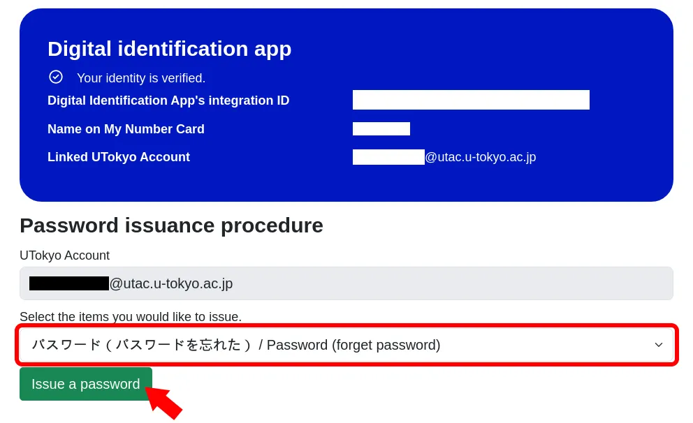 Reissuing a password using the UTokyo Account Identity Verification Service