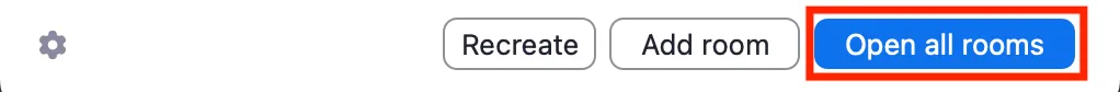 Once the final adjustments for rooms and participants are complete and everything for the breakout rooms is set up, open them to start the session. Click “Open all rooms” in the bottom right. Participants will then enter their respective breakout rooms and can begin their meetings.