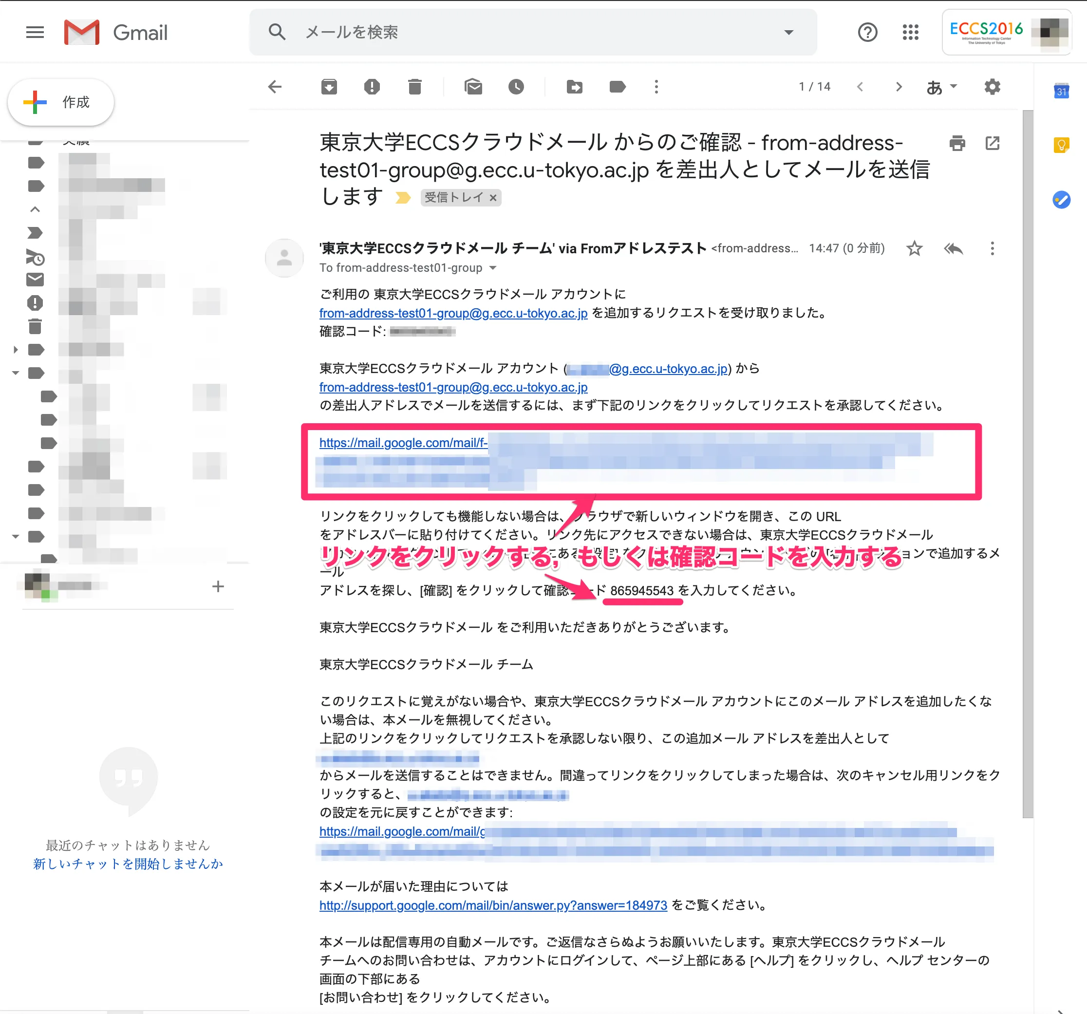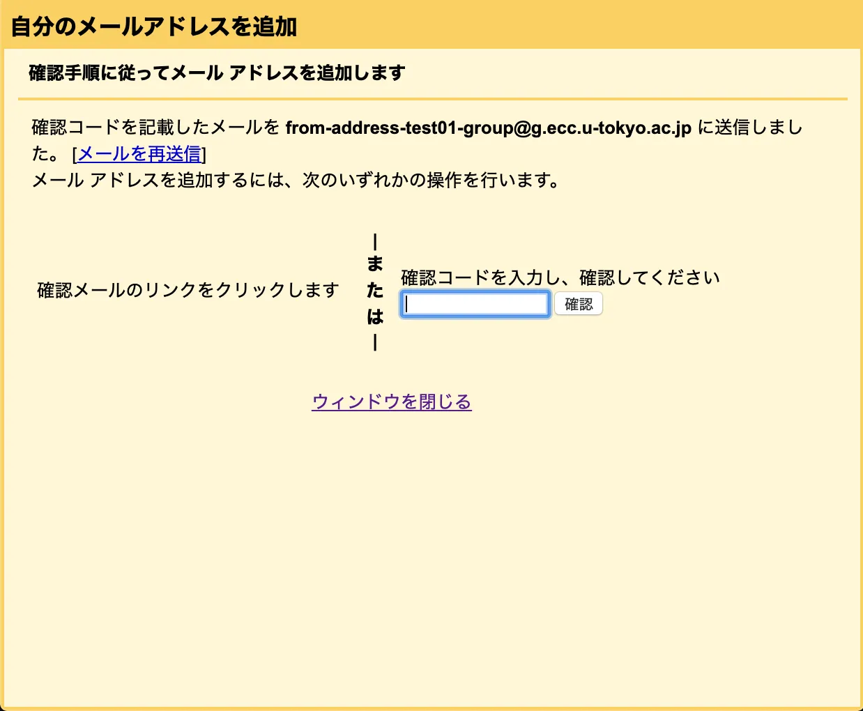 6. メーリングリストに宛てて,確認メールが送信されます.メール本文中のリンクを押すか,確認コードを用いて,あなたがこのメーリングリストのメンバーであることを示してください.