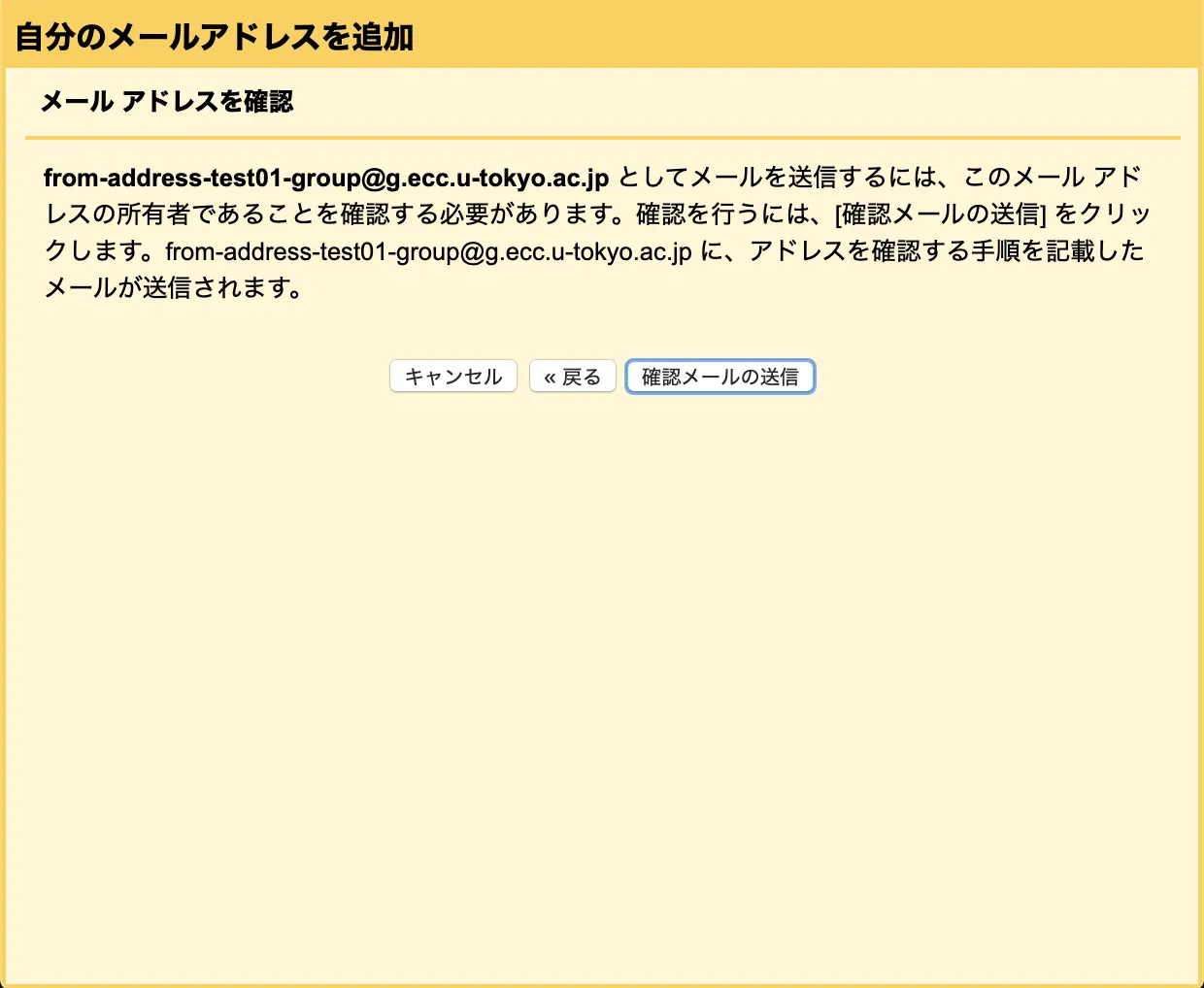 Googleグループのメールアドレスを差出人に指定してメールを送信する