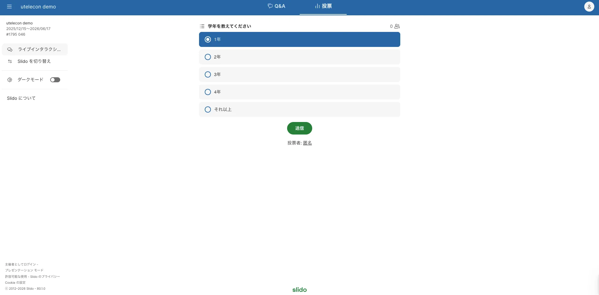 このページでは,Slidoで受講者(学生)ができる操作を説明しています.