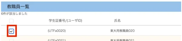 - 検索結果に表示されたユーザ一覧の中から,追加したいユーザを一覧の左端にあるチェックボックスで選択してください.
