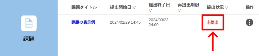 - 「提出状況」列の「未提出」(または「提出不要」)を押してください.
