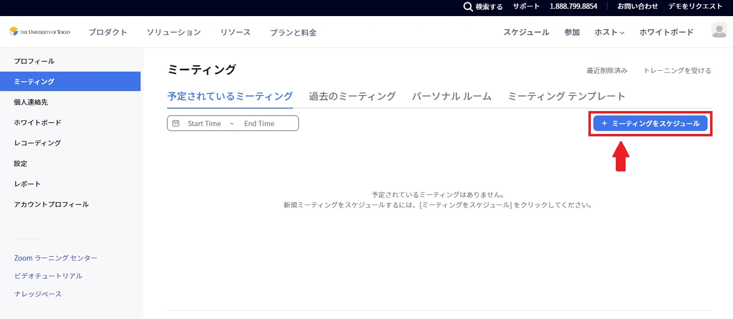 - Zoom ウェブポータルの「ミーティング」ページにアクセスしてください.