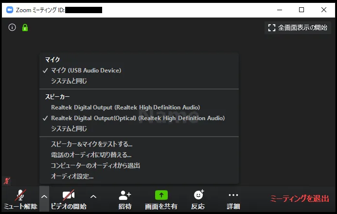 - スピーカー : 使いたいスピーカーを選択できます(別途スピーカーを付けている場合,複数の選択肢が出てくるため,目的のものを選択してください).「システムと同じ」はマイクと同様です.